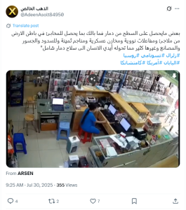 تداولت صفحات وحسابات على مواقع التواصل الاجتماعي مقطع فيديو صورته بكاميرا مراقبة، يُظهر تحطم محتويات مكتب على امرأة إثر هزة أرضية قوية.